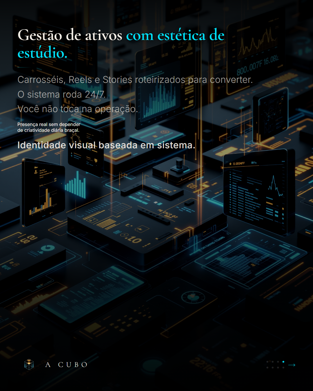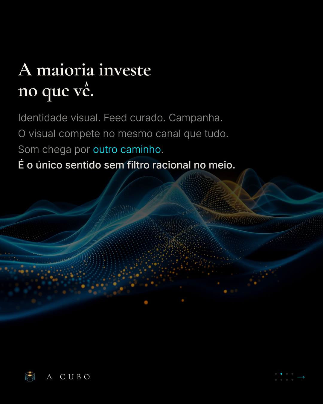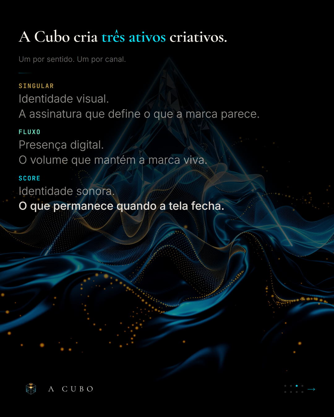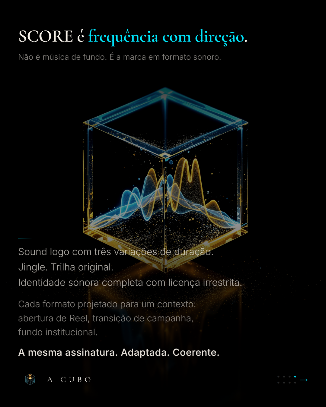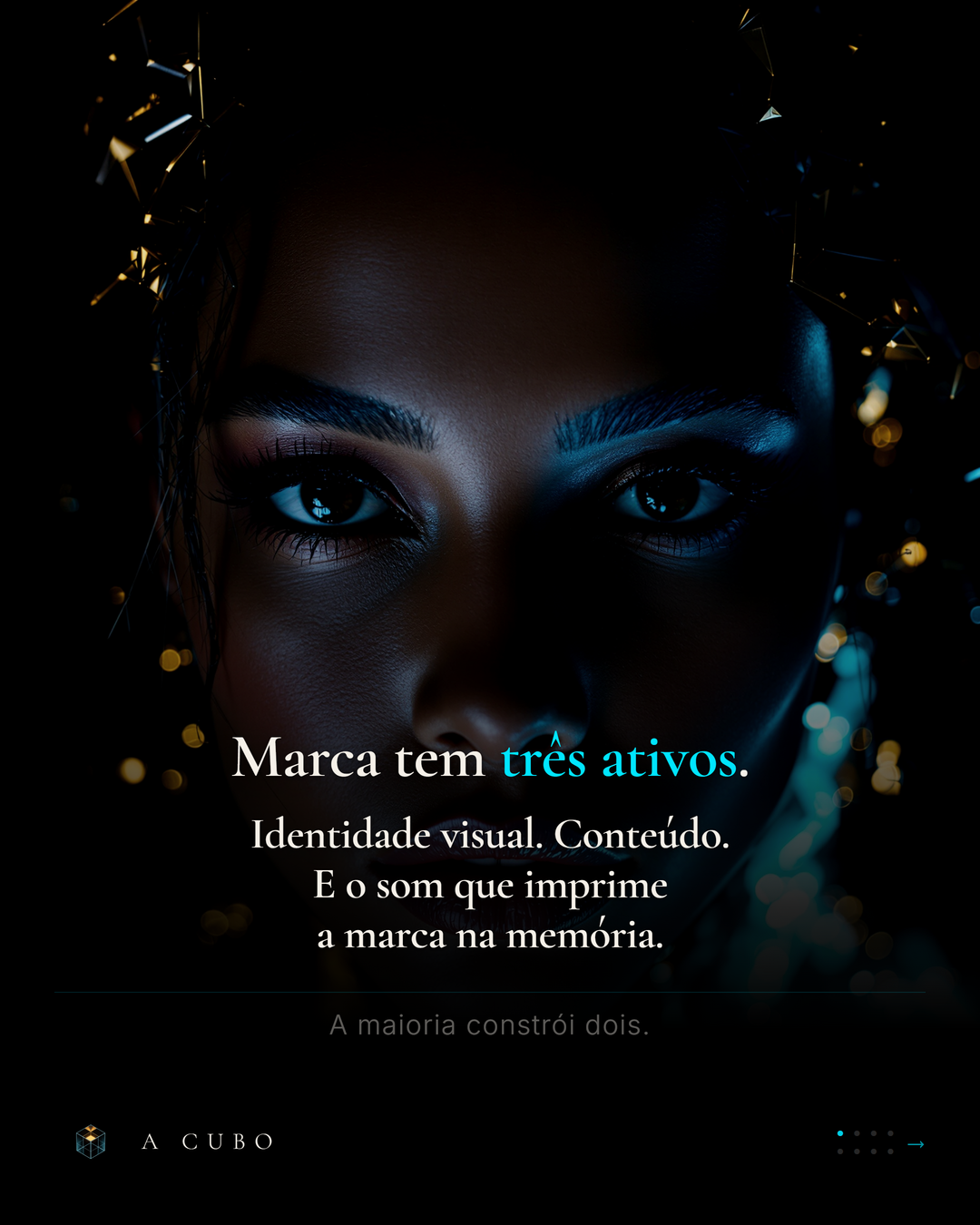 O que entregamos são ativos e não arte por arte: identidade que não pode ser copiada, conteúdo que sustenta a marca no tempo e o som que fica gravado depois que a tela apaga.